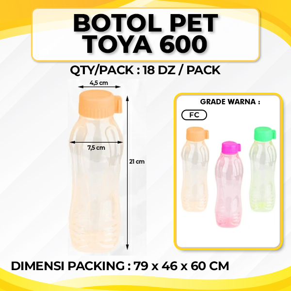 - Affordable Price: This Toya 600 Pet Bottle product is sold at a very affordable price and can be purchased wholesale in large quantities. So it is suitable for those who need plastic bottles in large quantities at low prices for souvenirs for large events to complete your business needs.