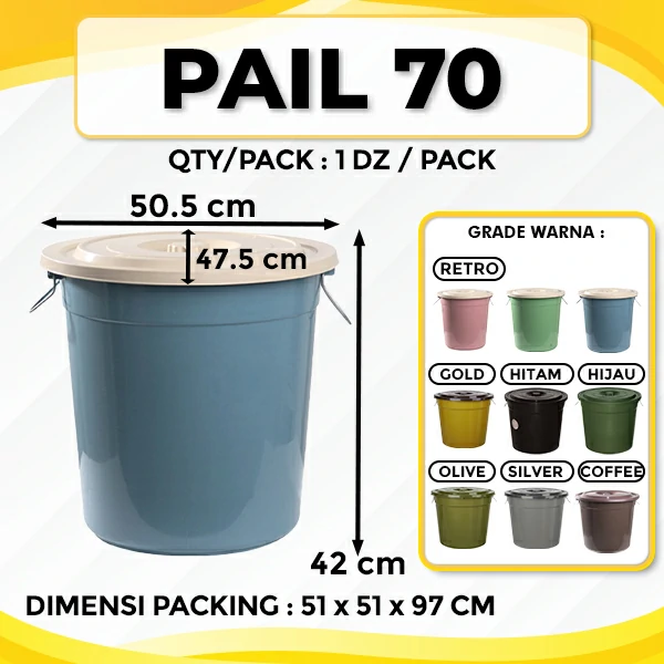 CV Wahana Surya is a Plastic Household Furniture Factory such as Pails 70 which are used for water storage in your home. Equipped with a handle made of wire, it will make it easier for you to move it and the Pail / Dipper is very suitable for use at home or for your business purposes because it uses attractive colors and designs and is made from plastic raw materials that are safe and not easily broken .