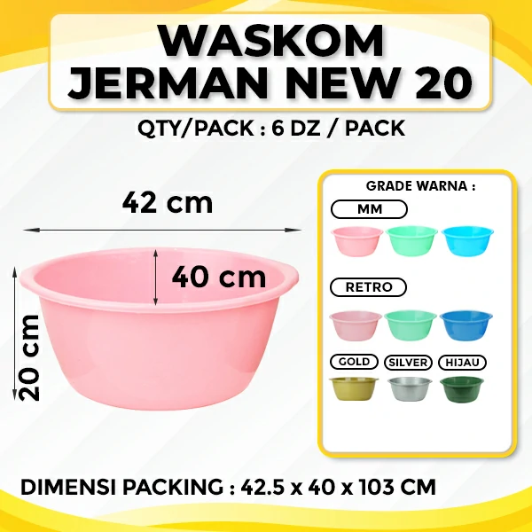 CV Wahana Surya adalah Pabrik Plastik Perabotan Rumah Tangga seperti Baskom Jerman New 20 yang digunakan untuk tempat penyimpanan dan mencuci buah dan sayur. Dengan menggunakan warna dan desain yang menarik, sangat cocok digunakan untuk acara hajatan atau untuk keperluan usaha anda. Baskom Jerman New 20 dibuat dari bahan baku plastik yang aman dan tidak mudah pecah.