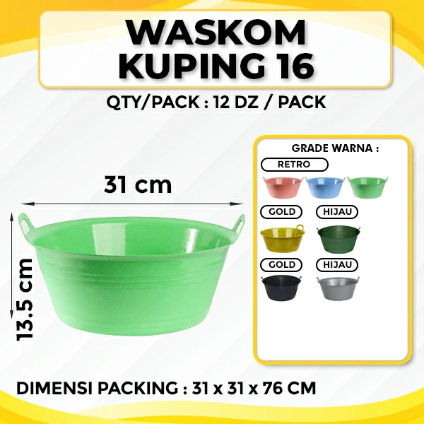CV Wahana Surya adalah Pabrik Plastik Perabotan Rumah Tangga seperti Baskom Kuping 16 yang digunakan untuk tempat penyimpanan dan mencuci buah dan sayur ataupun juga sebagai alternatif litter box hewan peliharaan anda. Dengan menggunakan warna dan desain yang menarik, sangat cocok digunakan untuk berbagai keperluan dirumah anda. Baskom Kuping 16 dibuat dari bahan baku plastik yang aman dan tidak mudah pecah dan warna tidak mudah luntur.
