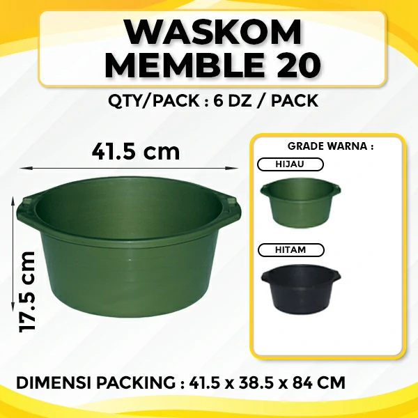 CV Wahana Surya adalah Pabrik Plastik Perabotan Rumah Tangga seperti Baskom Memble 20. Dengan menggunakan warna dan desain pegangan yang fungsional, Baskom Air Memble 20 cocok digunakan untuk tempat penyimpanan dan mencuci pakaian dan perlengkapan makan di rumah anda. Waskom Memble dibuat dari bahan baku plastik yang aman dan tidak mudah pecah.