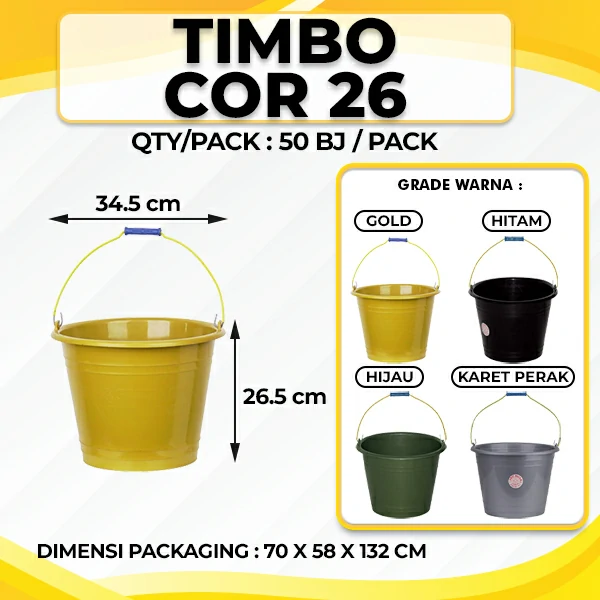CV Wahana Surya adalah Pabrik Plastik Perabotan Rumah Tangga seperti Tong Air / Pail / Timba / ember plastik jumbo yang digunakan untuk tempat penyimpanan air dirumah anda. Dilengkapi pegangan yang terbuat dari kawat, akan memudahkan anda saat memindahkannya serta Tong Air / Pail / Ember Cor 26 sangat cocok digunakan di rumah atau untuk keperluan usaha anda karena menggunakan warna dan desain yang menarik serta dibuat dari bahan baku plastik yang aman dan tidak mudah pecah.
