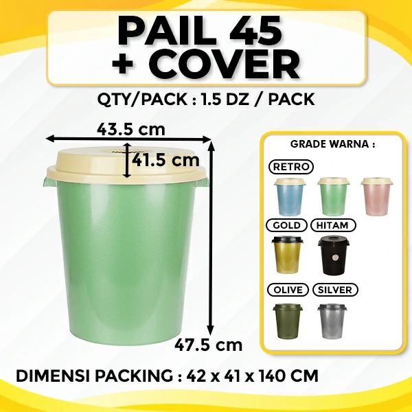 CV Wahana Surya adalah Pabrik Plastik Perabotan Rumah Tangga seperti Pail / tong air 100 liter / Timba Air 45 yang digunakan untuk tempat penyimpanan air dirumah anda. Dilengkapi pegangan yang terbuat dari kawat, akan memudahkan anda saat memindahkannya serta Pail / Tong / Timba Air 45 sangat cocok digunakan di rumah atau untuk keperluan usaha anda karena menggunakan warna dan desain yang menarik serta dibuat dari bahan baku plastik yang aman dan tidak mudah pecah.