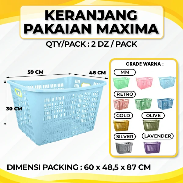 CV Wahana Surya adalah Pabrik Plastik Perabotan Rumah Tangga seperti keranjang baju kotor plastik yang digunakan untuk tempat penyimpanan sementara pakaian kotor dirumah anda. Dengan menggunakan warna yang cantik serta desain yang menarik, sangat cocok digunakan untuk keperluan dekorasi rumah tangga atau keperluan dekorasi tempat usaha anda. Keranjang Pakaian Maxima dibuat dari bahan baku plastik yang aman dan tidak mudah pecah.