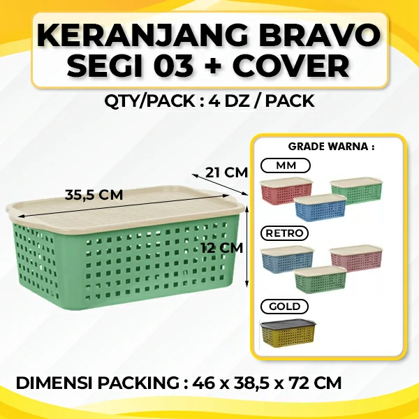 Keranjang Segi Bravo 03 + Cover dapat digunakan untuk menyimpan alat kaki dirumah anda agar rapi dan tertata. Dengan menggunakan desain yang elegan dan warna yang menarik, sangat cocok digunakan untuk keperluan dekorasi rumah tangga atau keperluan dekorasi tempat usaha anda. tempat alat tulis kantor dibuat dari bahan baku plastik yang aman dan tidak mudah pecah. Keranjang Segi Bravo 03 + Cover diproduksi dari bahan yang berbahan plastik yang berkualitas tinggi sehingga bahan akan menjadi kuat, dan tahan lama dalam pemakaian memiliki warna yang juga cukup menarik.
