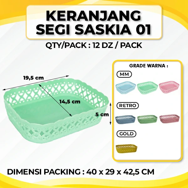 Keranjang Segi Saskia 01 dapat digunakan untuk menyimpan alat kaki dirumah anda agar rapi dan tertata. Dengan menggunakan desain yang elegan dan warna yang menarik, sangat cocok digunakan untuk keperluan dekorasi rumah tangga atau keperluan dekorasi tempat usaha anda. keranjang tempat pensil dibuat dari bahan baku plastik yang aman dan tidak mudah pecah. Keranjang Segi Saskia 01 diproduksi dari bahan yang berbahan plastik yang berkualitas tinggi sehingga bahan akan menjadi kuat, dan tahan lama dalam pemakaian memiliki warna yang juga cukup menarik.