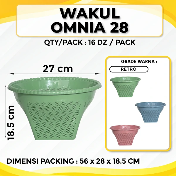 Wakul Omnia 28 merupakan wakul nasi yang berfungsi untuk untuk berbagai keperluan seperti mencuci perlengkapan memasak, menampung cucian, menampung bahan-bahan dapur, hingga kebutuhan memasak dalam jumlah minimalis. Sudah dirancang dengan motif lubang pada bagian seluruh produk, sangat cocok untuk melengkapi kebutuhan rumah tangga Anda.