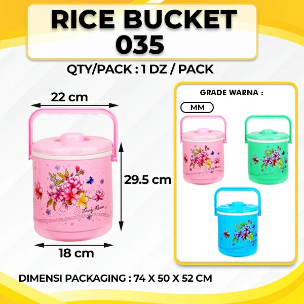 CV Wahana Surya adalah Pabrik Plastik Perabotan Rumah Tangga seperti Rice Bucket 035 atau bisa juga disebut termos nasi mini yang digunakan sebagai tempat nasi ataupun tempat es serta sebagai pelengkap alat makan dirumah. Dengan tersedia beberapa pilihan Ukuran Warna, membuat produk Rice Bucket sangat cocok digunakan dirumah anda atau untuk keperluan usaha anda. Rice Bucket dibuat dari bahan baku plastik yang aman dan tidak mudah pecah.