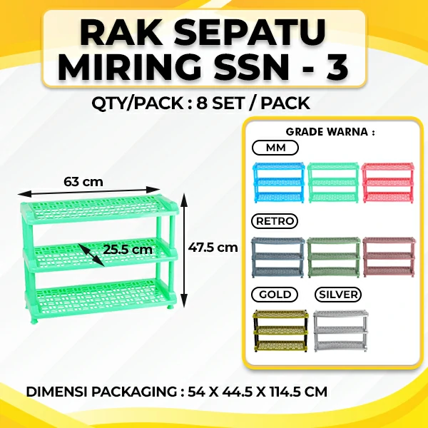 Rak Sepatu Miring Susun 3 dapat digunakan untuk menyimpan alat kaki dirumah anda agar rapi dan tertata. Dengan menggunakan desain yang elegan dan warna yang menarik, sangat cocok digunakan untuk keperluan dekorasi rumah tangga atau keperluan dekorasi tempat usaha anda. Rak sepatu susun plastik dibuat dari bahan baku plastik yang aman dan tidak mudah pecah. Rak Salon Susun 4diproduksi dari bahan yang berbahan plastik yang berkualitas tinggi sehingga bahan akan menjadi kuat, dan tahan lama dalam pemakaian memiliki warna yang juga cukup menarik.