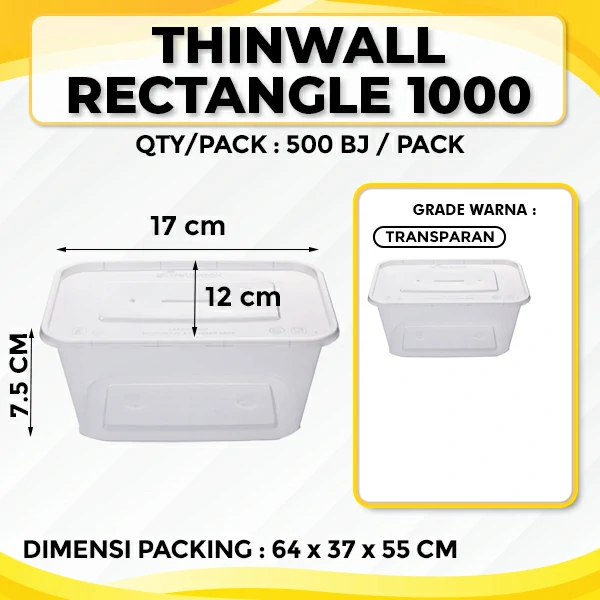 Produk thinwall 1000ml persegi  ini sudah dirancang dengan ukuran yang ideal membuatnya bisa menyimpan makanan dengan aman dalam jumlah banyak. Produk ini tersedia dengan warna transparan.