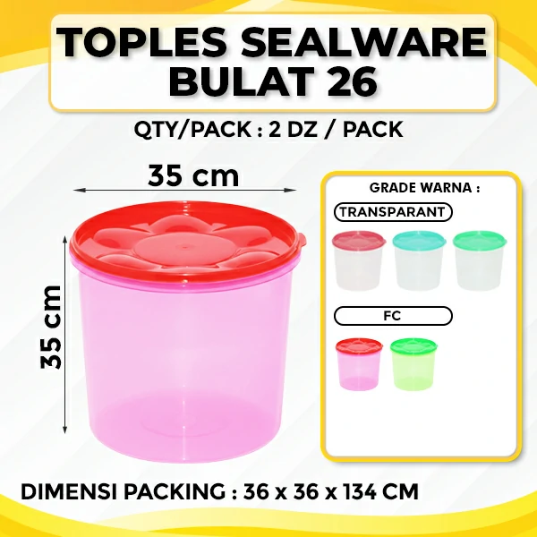 CV Wahana Surya adalah Pabrik Plastik Perabotan Rumah Tangga seperti tempat kerupuk besar yang juga dapat digunakan untuk tempat penyimpanan makanan ringan di rumah atau tempat usaha anda. Dilengkapi penutup yang kedap udara, menjaga kualitas makanan didalam terjaga dengan baik serta Toples Sealware Bulat 26 menggunakan warna dan desain yang menarik, sangat cocok digunakan untuk acara hajatan atau untuk keperluan usaha anda. Toples Sealware Bulat 26 dibuat dari bahan baku plastik yang aman dan tidak mudah pecah.